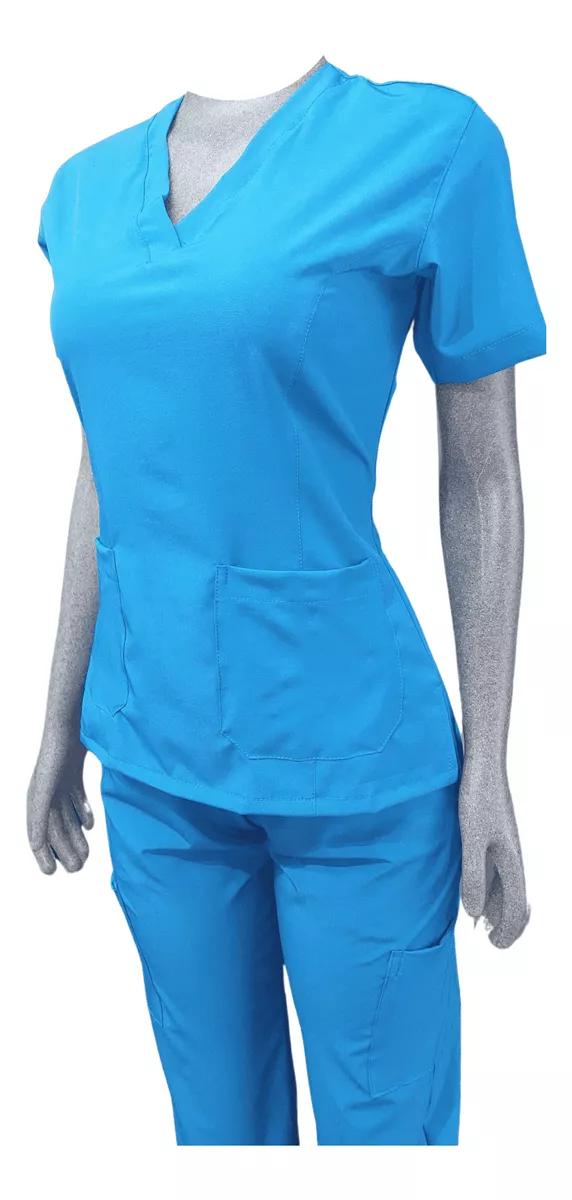 Confeccionado en un material de alta calidad, compuesto por 93% poliéster y 7% spandex, este pijama ofrece una excelente elasticidad y resistencia, permitiendo libertad de movimiento durante largas jornadas.